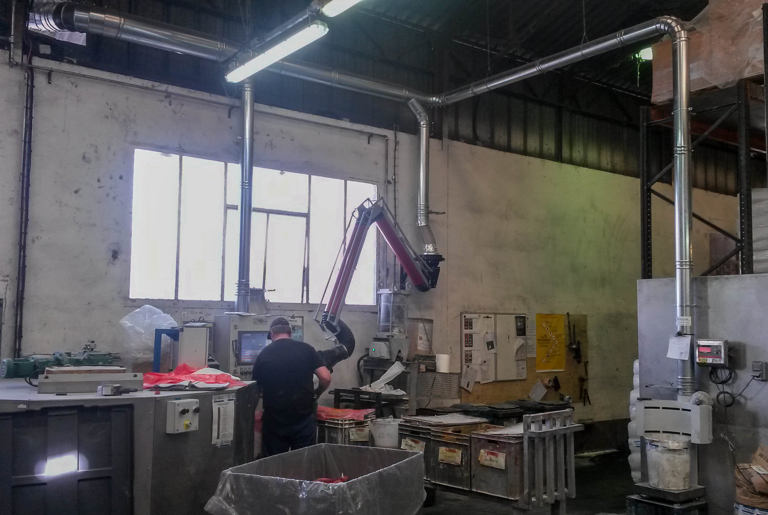 Aspiration de poudre volatile avec bras aspirant articulé et anneaux de Pouyes. Réseau en gaine galvanisée à bord tombé et [...]