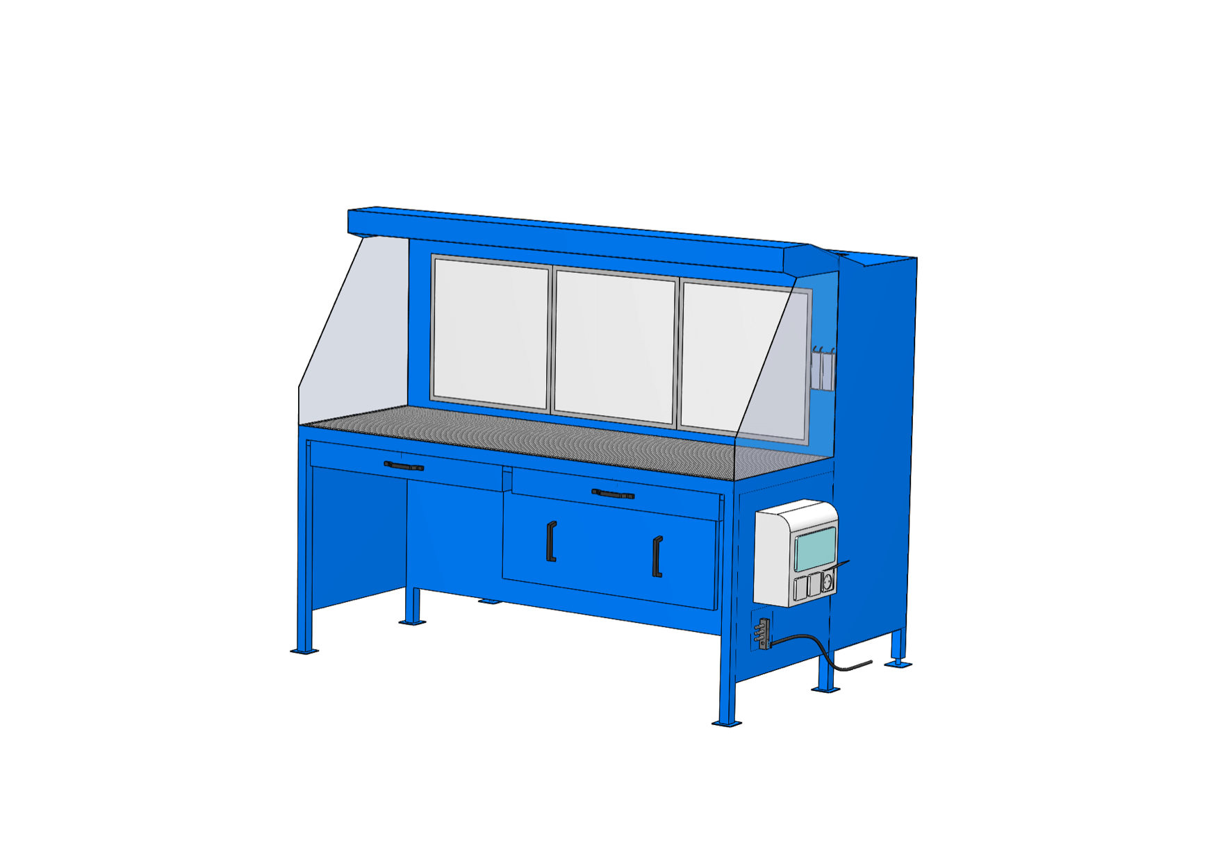 Demi-anneau de pouyes en acier peint pour aspiration de poudre volatile sur balance. Réseau en gaine à bord tombé. Conception [...]