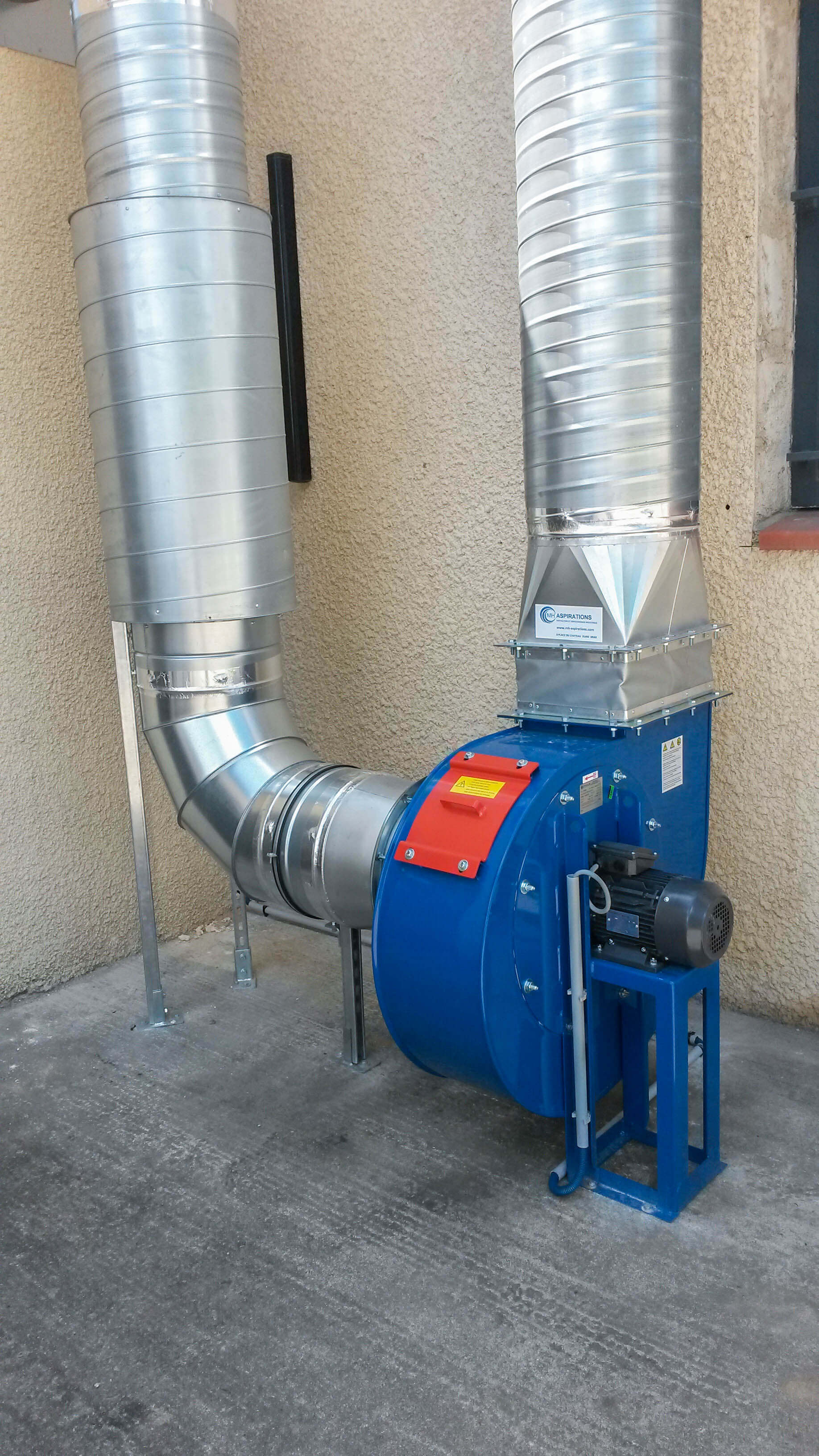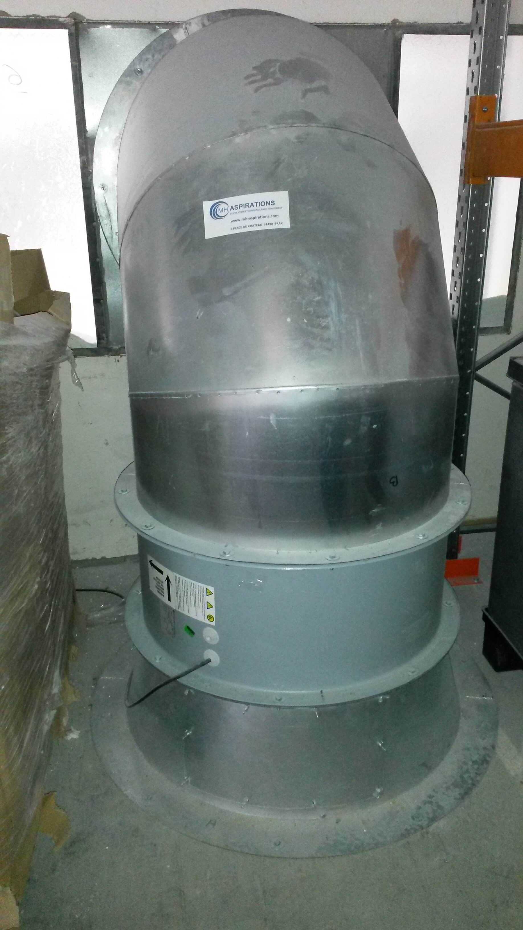 Ventilateur hélicoïde raccordé à une gaine spiralée galvanisée pour aspiration de fumée