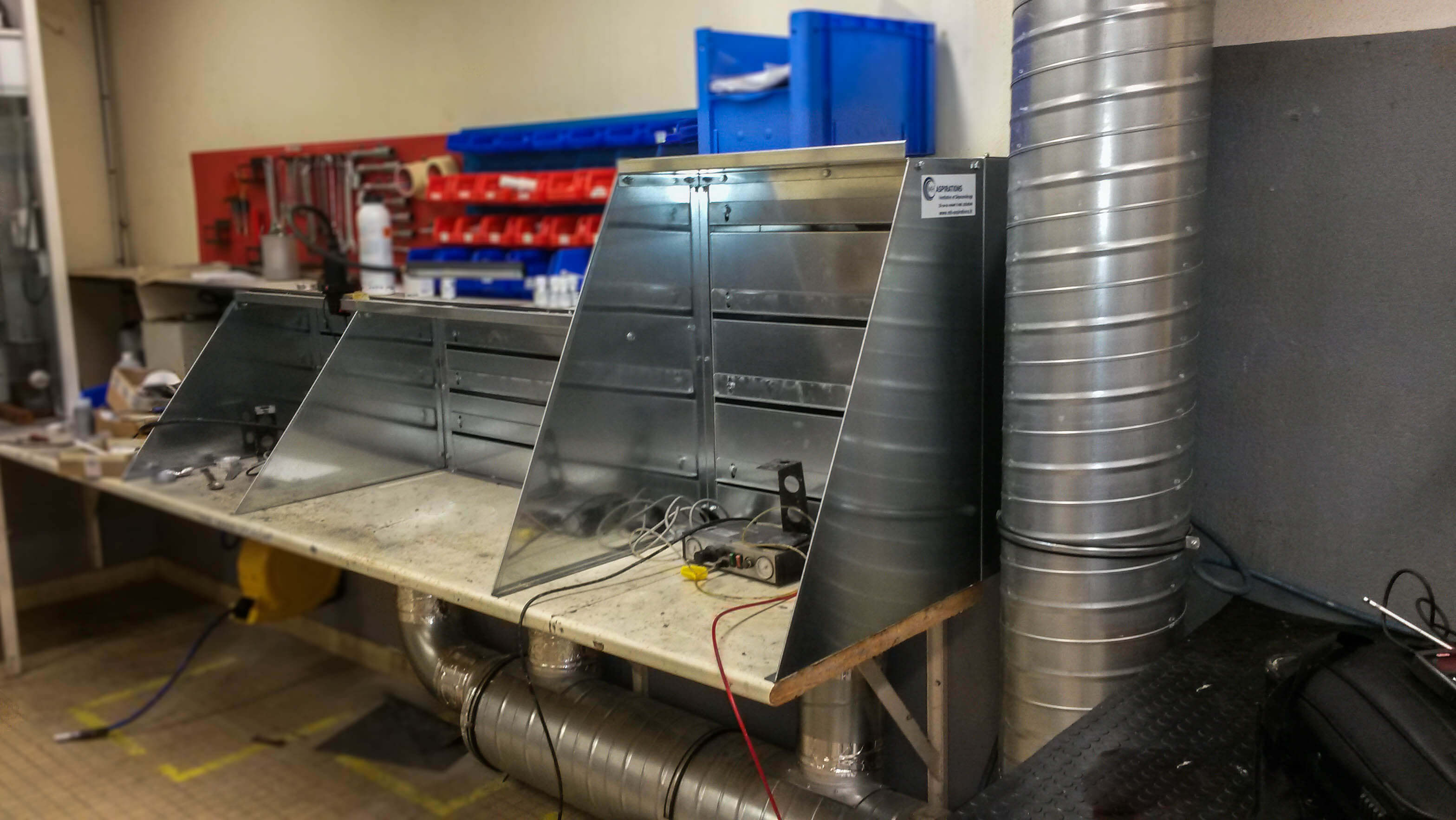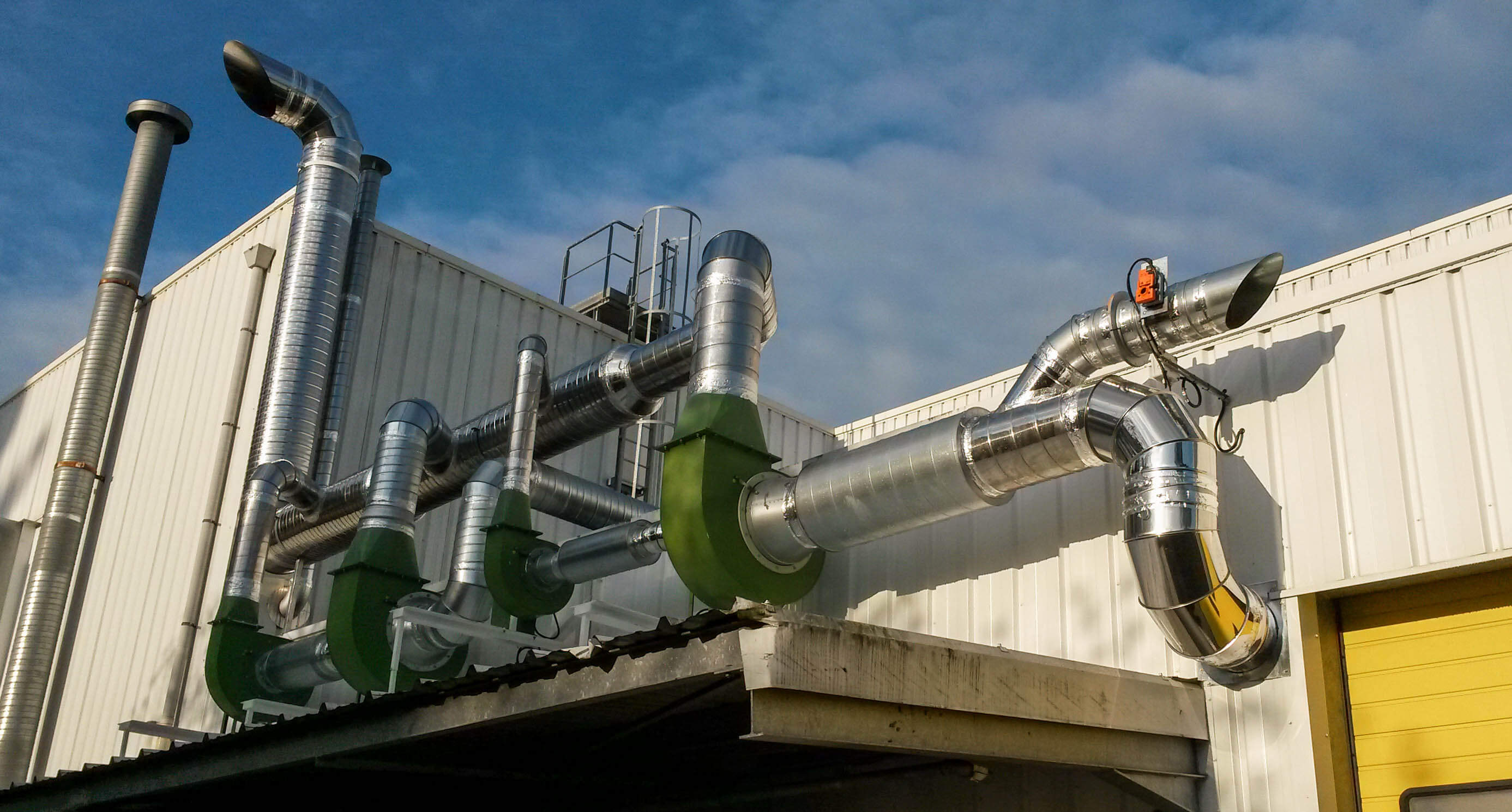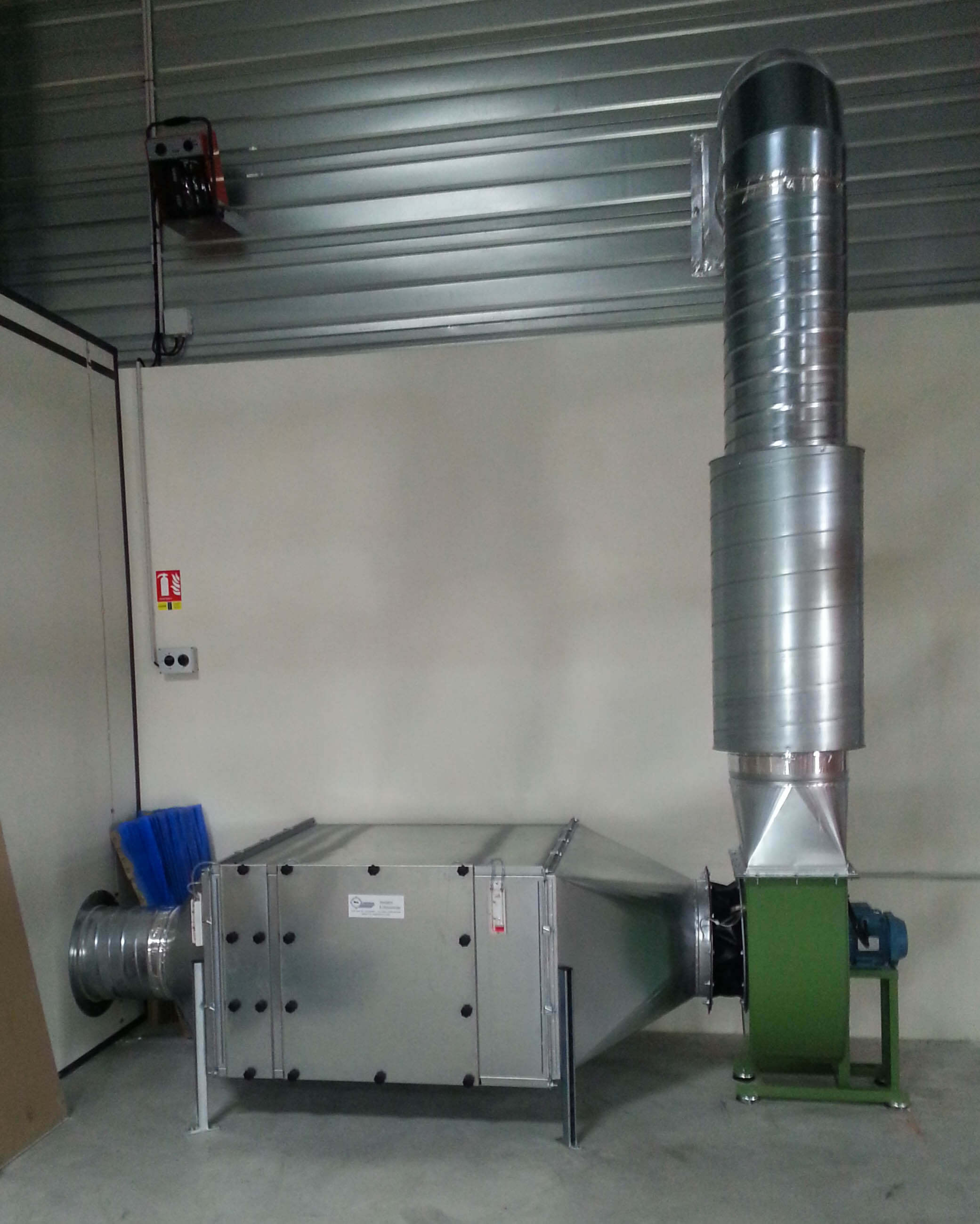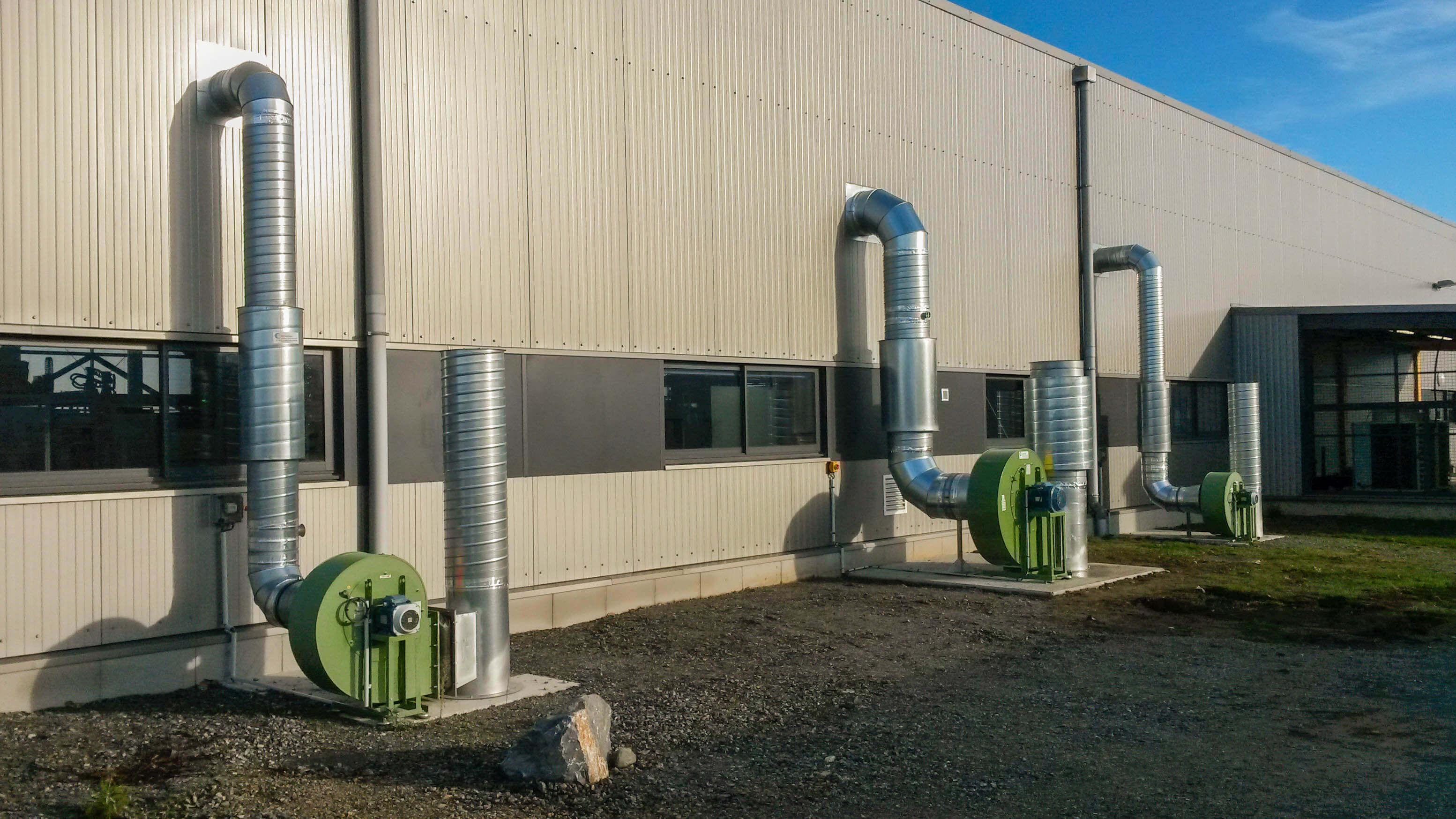 Ventilateur hélicoïde raccordé à une gaine spiralée galvanisée pour aspiration de fumée sur une ligne installée dans une société issue [...]