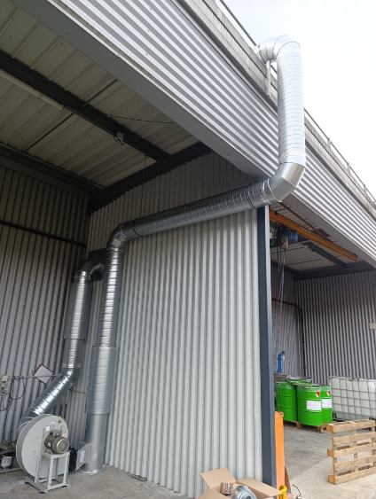 Installation de conduits d'extraction galvanisés pour système de ventilation industrielle MH Aspirations dans une entreprise de fabrication d'isolants à Toulouse