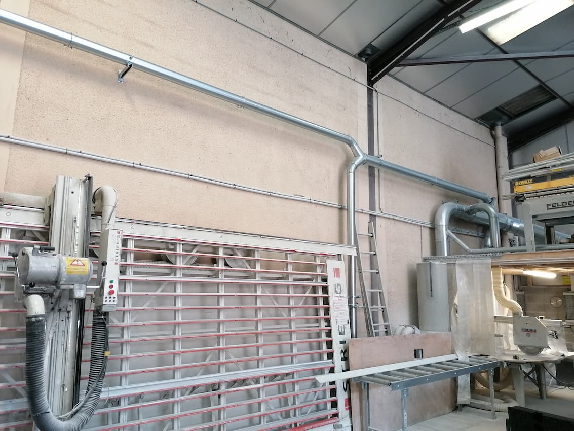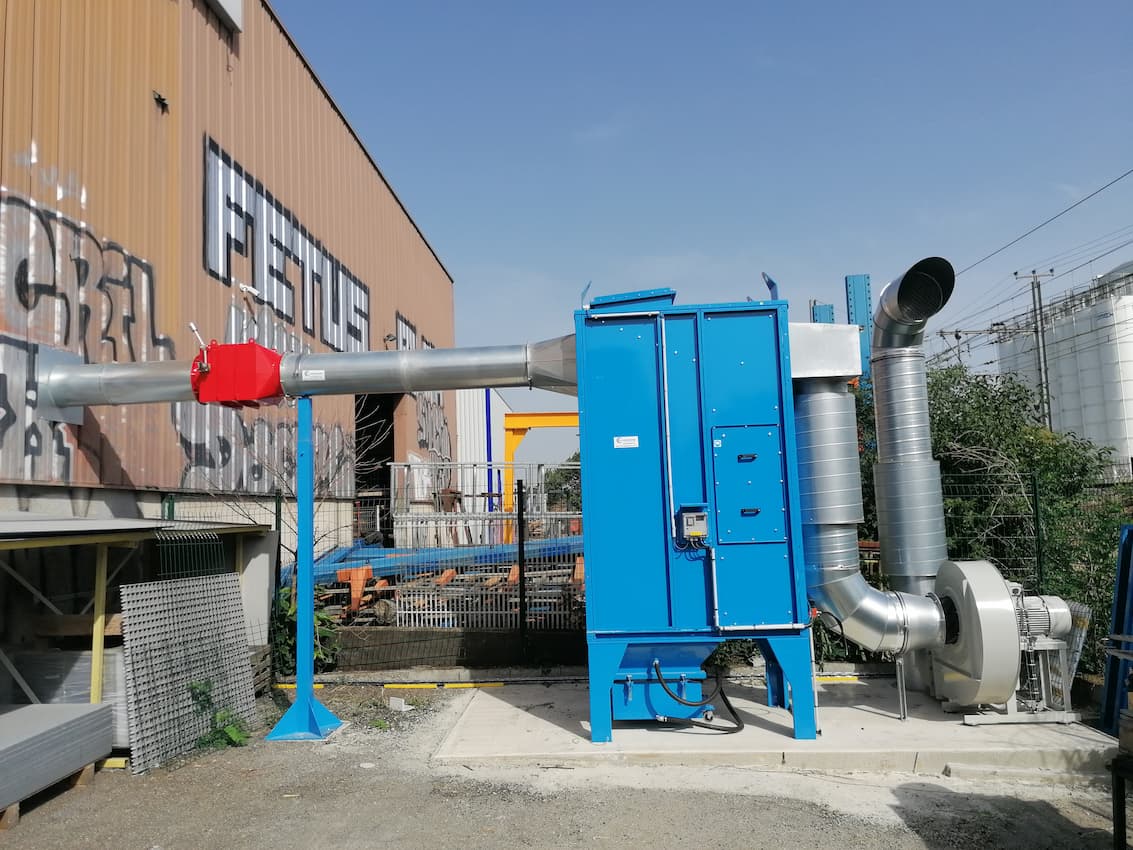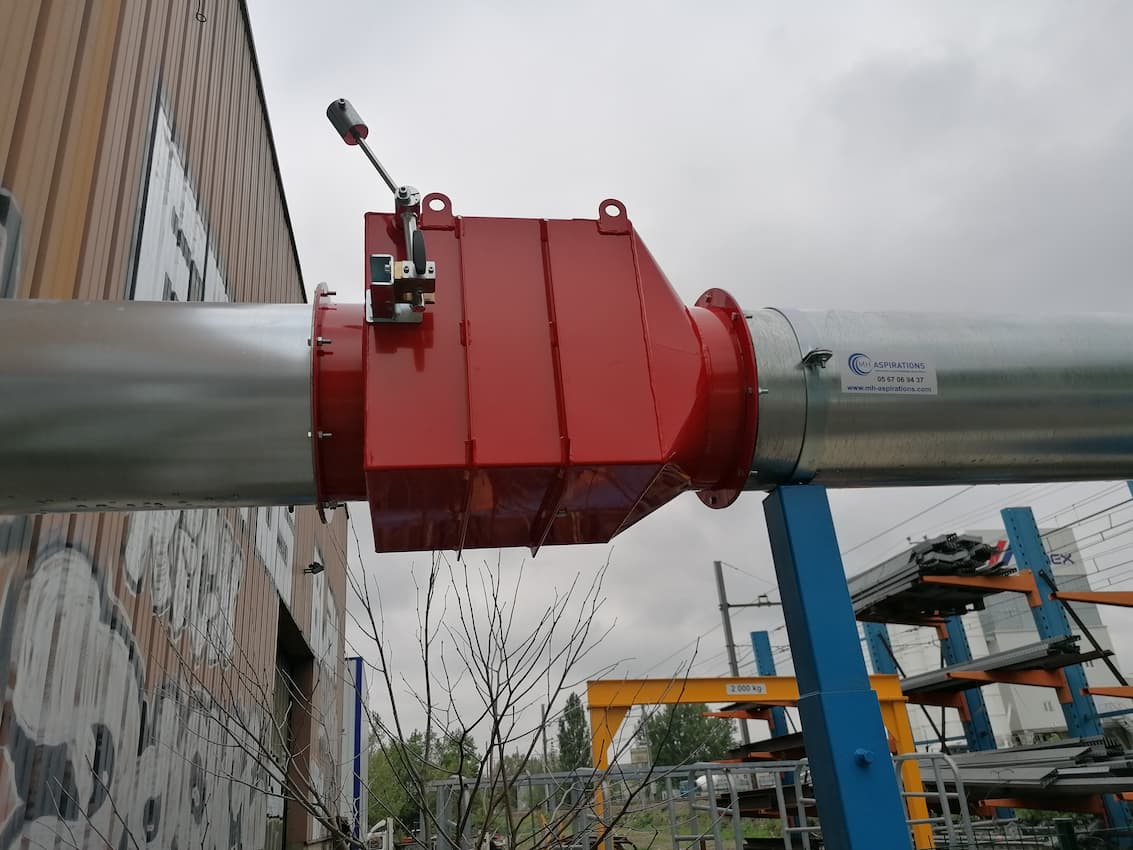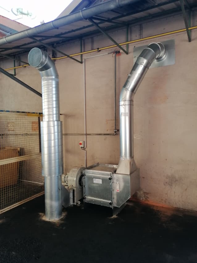 Réseau gaines galvanisées spiralée pour extraction fumée sur étuves. Rejet en toiture au travers d’une souche.