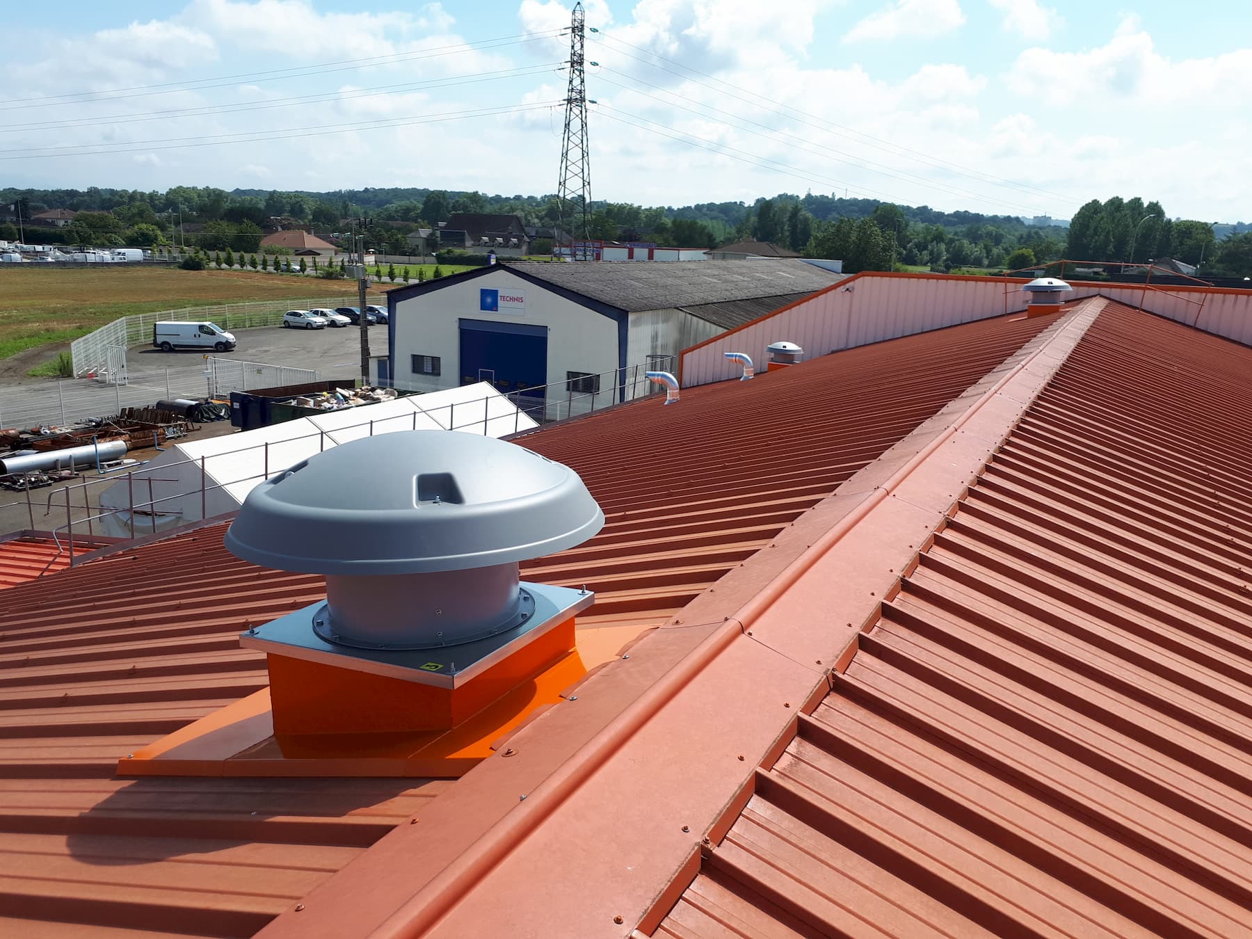 Tourelle ventilation en toiture sur souche toiture. Aspiration fumée de soudure.